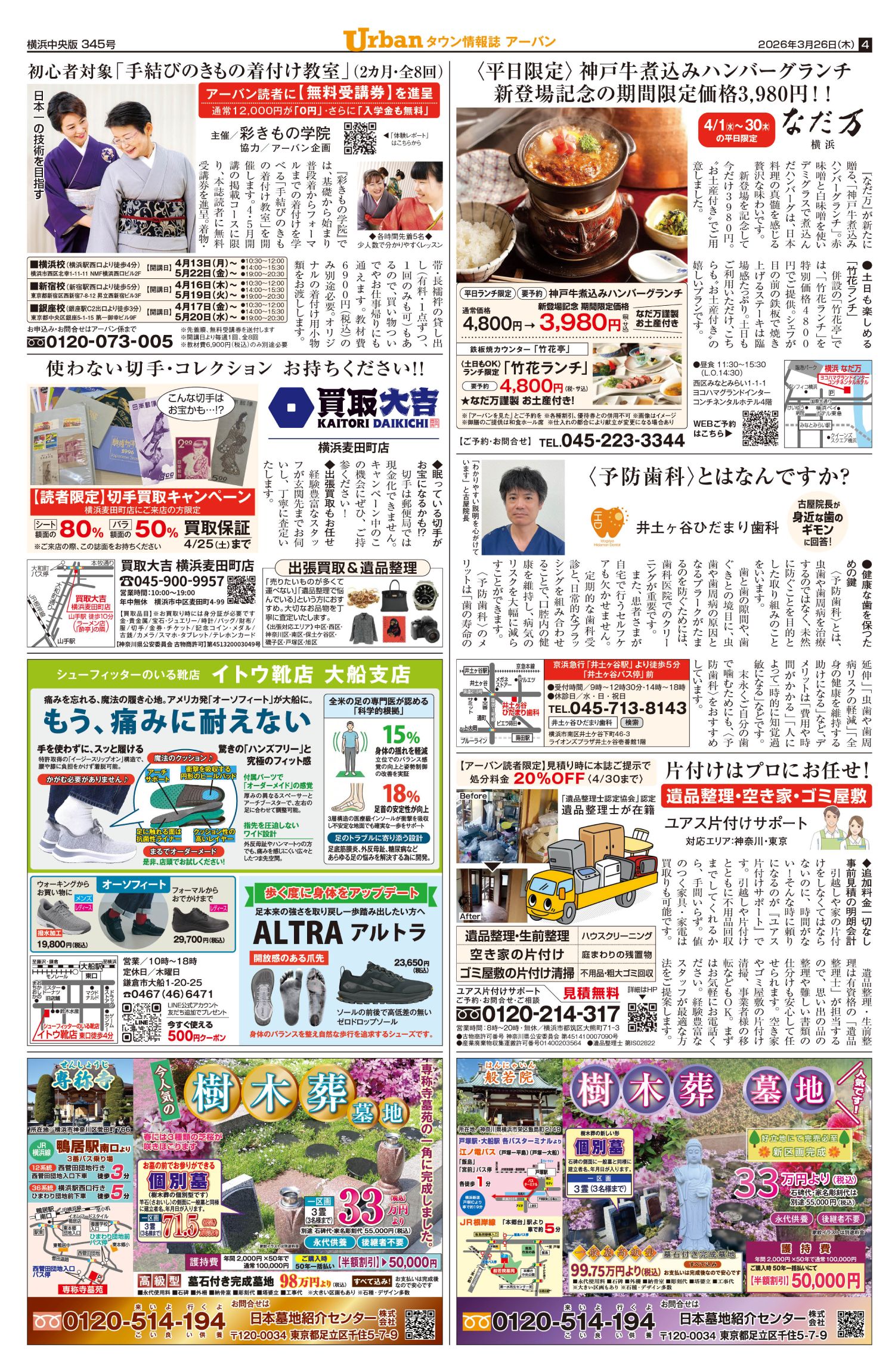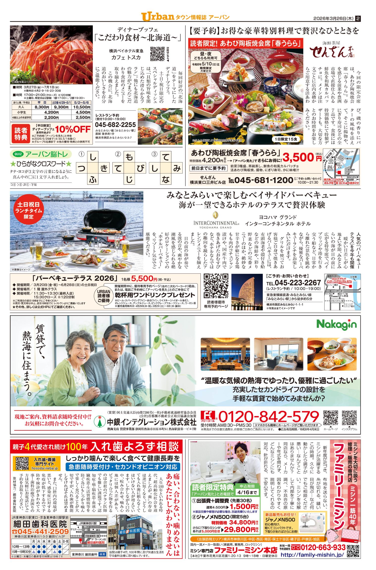 その他 横浜タウン情報誌アーバン 横浜中央版 広がる、届ける。ダイレクトコミュニケーション チラシ クチコミを見る・投稿する チラシ 広告有効期限:2026.03.26~2026.04.22 その他のネットチラシ 周辺のチラシを見る このお店のTOPページへ twitter Facebook Google+