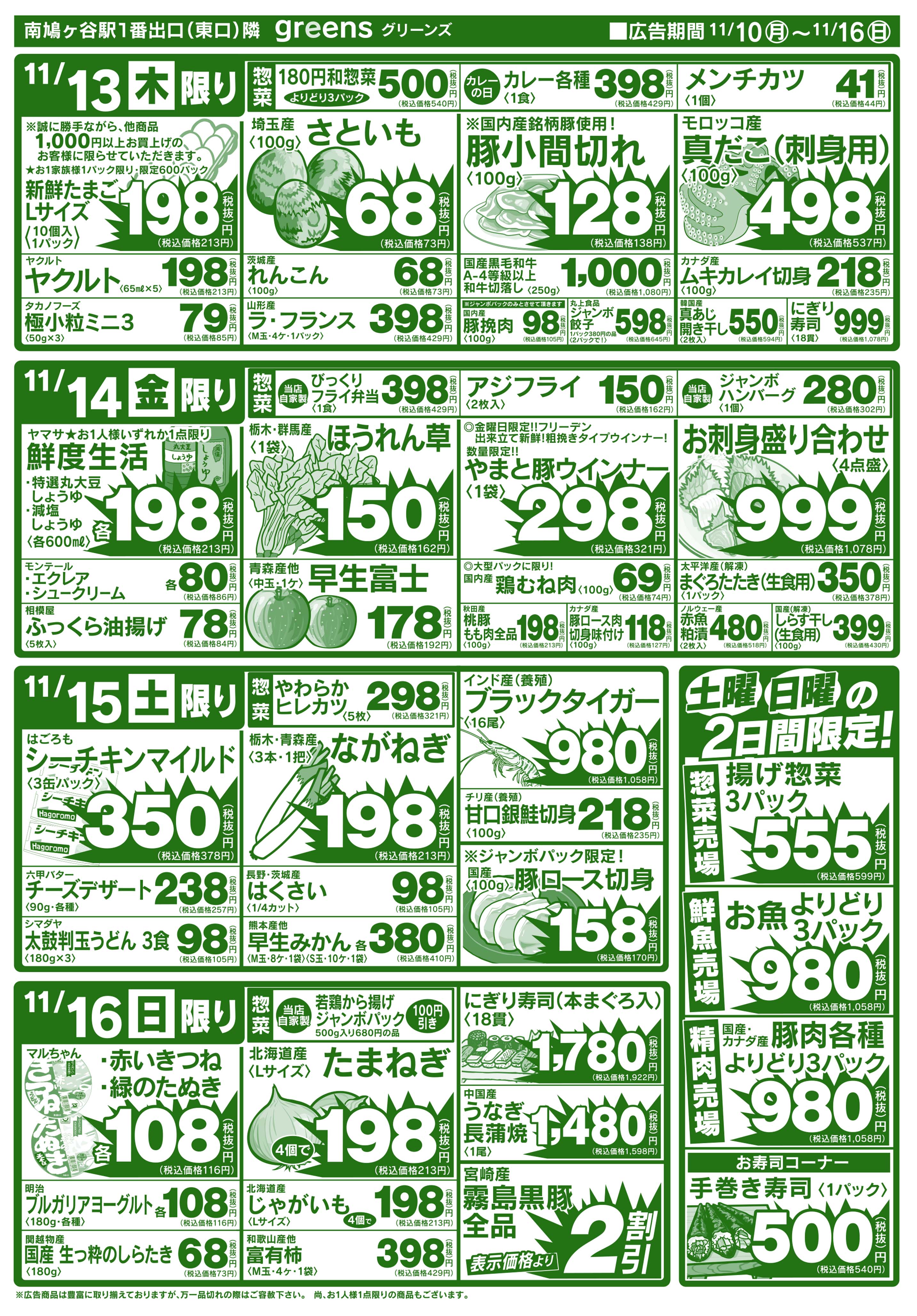 その他 埼玉県川口市 生鮮スーパーグリーンズ リーズナブルな価格と新鮮さが売りの、農家が経営する人気のスーパー ピックアップニュース チラシ クチコミを見る・投稿する チラシ 広告有効期限:2025.11.10~2025.11.16 その他のネットチラシ 周辺のチラシを見る 周辺情報 グルメ ショッピング 車・バイク 住宅 暮らし 趣味・レジャー 美容・健康 周辺情報はありません このお店のTOPページへ 048-283-1631 twitter Facebook Google+