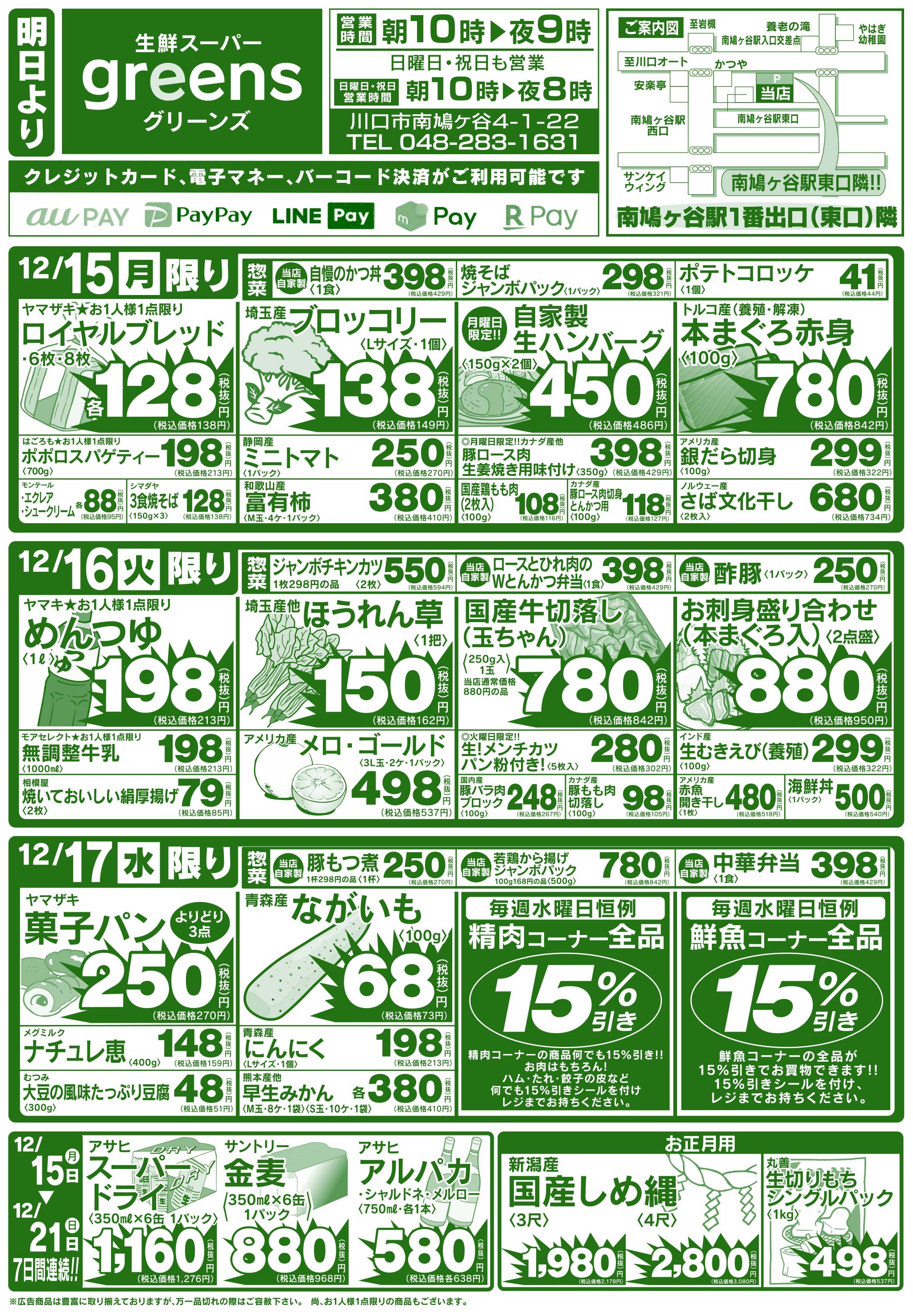 その他 埼玉県川口市 生鮮スーパーグリーンズ リーズナブルな価格と新鮮さが売りの、農家が経営する人気のスーパー ピックアップニュース チラシ クチコミを見る・投稿する チラシ 広告有効期限:2025.12.15~2025.12.21 その他のネットチラシ 周辺のチラシを見る 周辺情報 グルメ ショッピング 車・バイク 住宅 暮らし 趣味・レジャー 美容・健康 周辺情報はありません このお店のTOPページへ 048-283-1631 twitter Facebook Google+