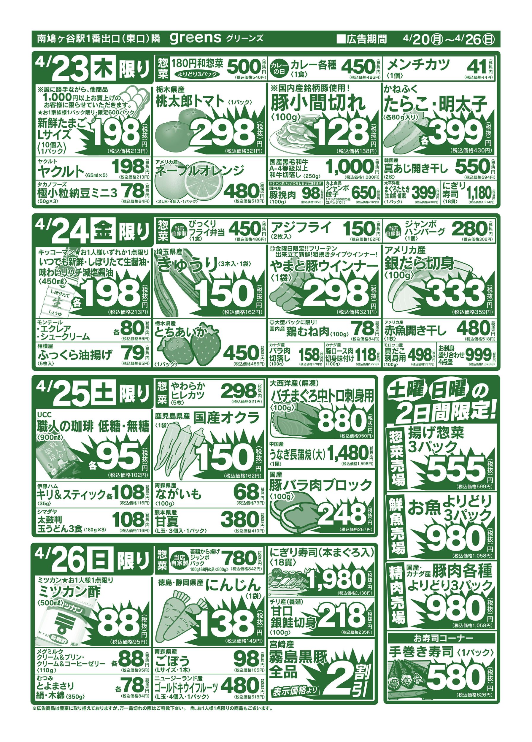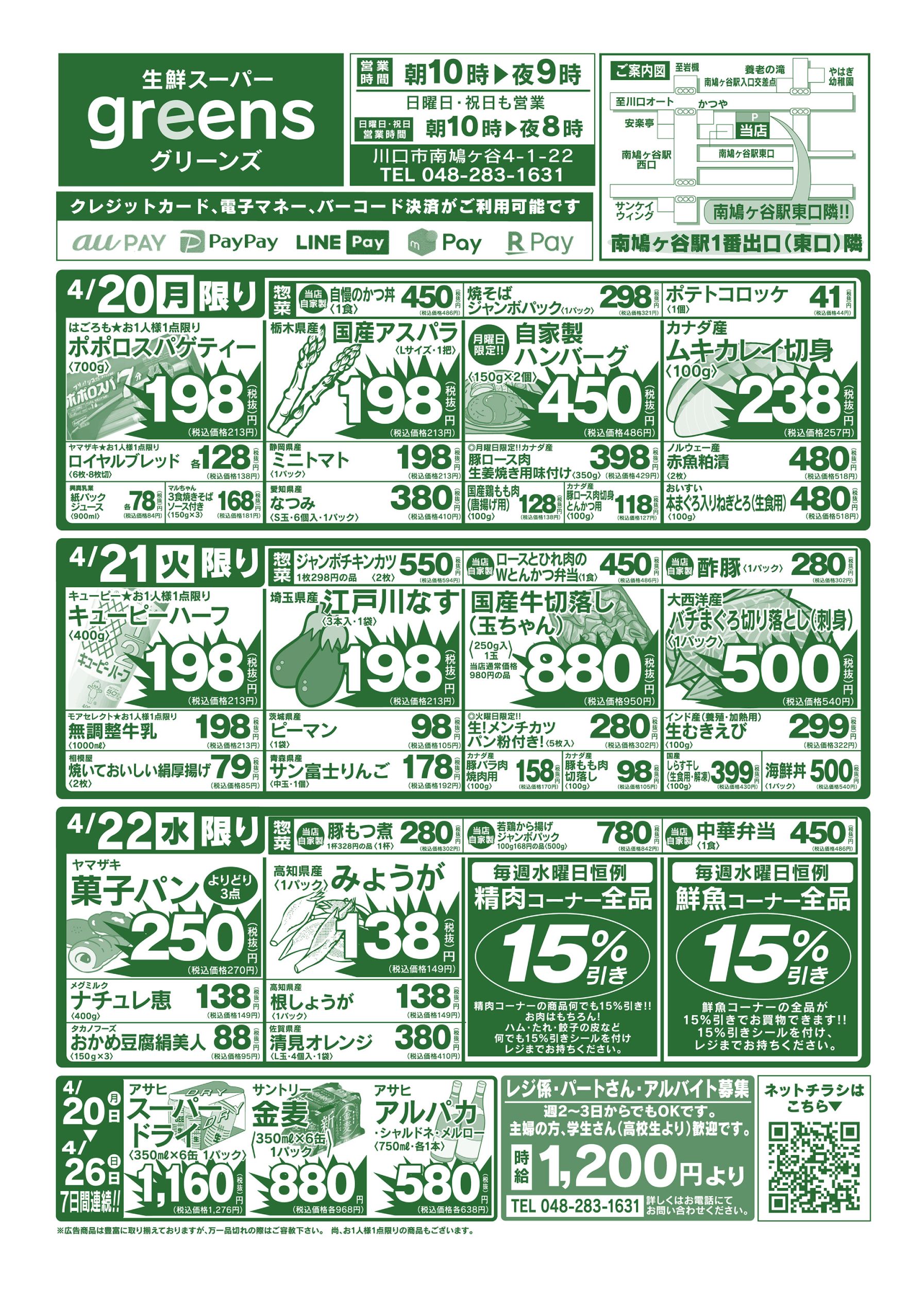 その他 埼玉県川口市 生鮮スーパーグリーンズ リーズナブルな価格と新鮮さが売りの、農家が経営する人気のスーパー ピックアップニュース チラシ クチコミを見る・投稿する チラシ 広告有効期限:2026.04.20~2026.04.26 その他のネットチラシ 周辺のチラシを見る 周辺情報 グルメ ショッピング 車・バイク 住宅 暮らし 趣味・レジャー 美容・健康 周辺情報はありません このお店のTOPページへ 048-283-1631 twitter Facebook Google+
