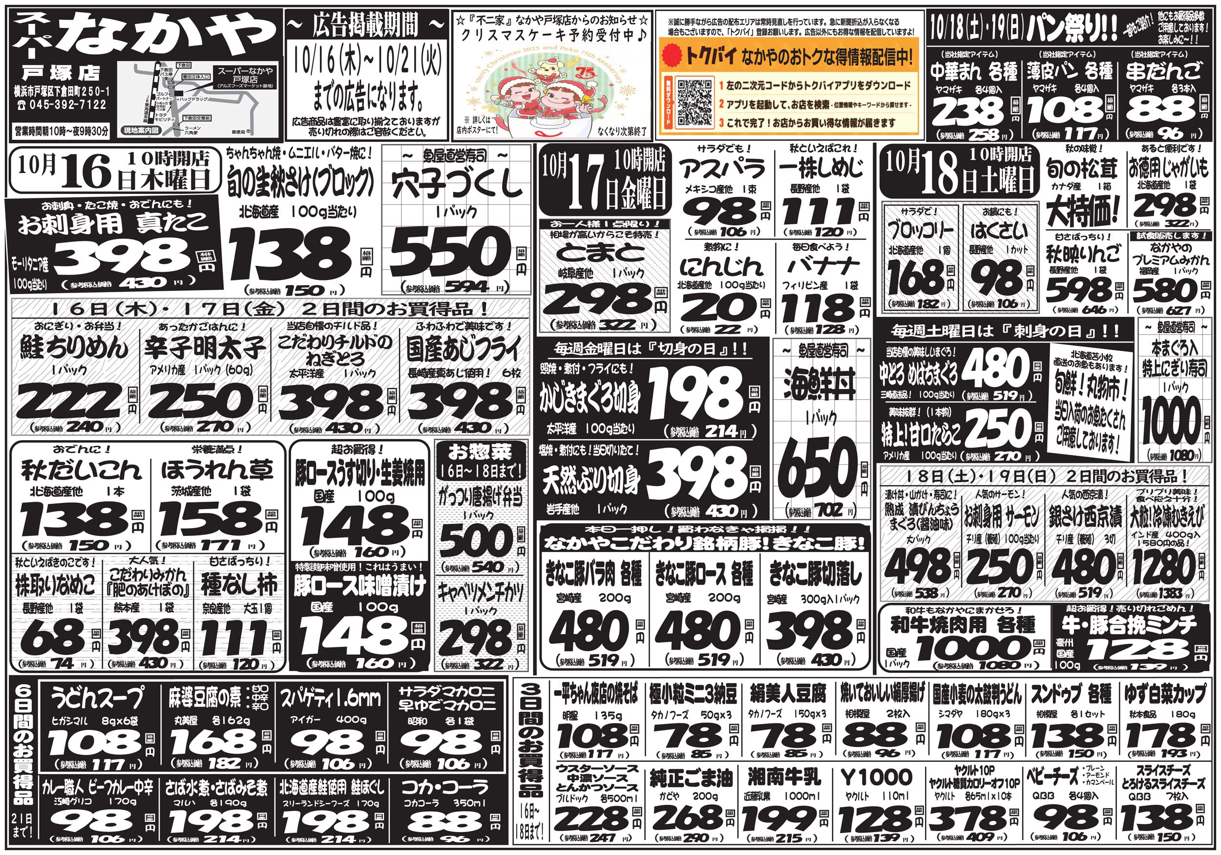 横浜市戸塚区 スーパー なかや 戸塚店 お客様の冷蔵庫がわりにご利用下さい。お買い得商品は折込チラシでチェック! チラシ クチコミを見る・投稿する チラシ 広告有効期限:2025.10.16~2025.10.21 その他のネットチラシ 周辺のチラシを見る このお店のTOPページへ 045-392-7122 twitter Facebook Google+