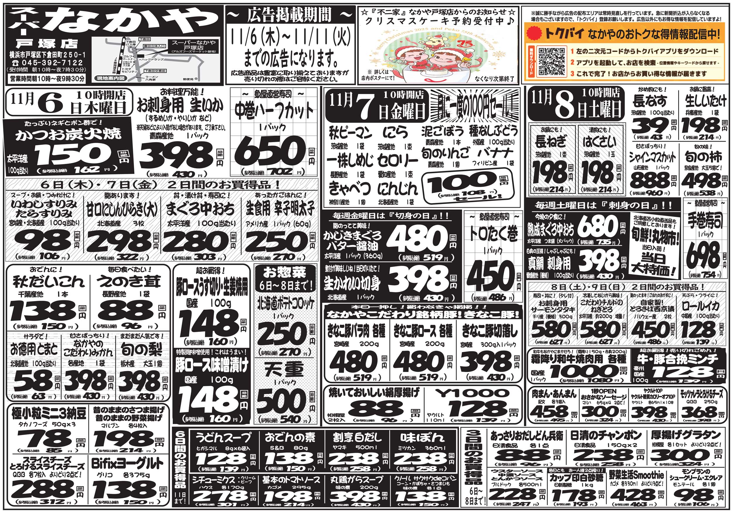 横浜市戸塚区 スーパー なかや 戸塚店 お客様の冷蔵庫がわりにご利用下さい。お買い得商品は折込チラシでチェック! チラシ クチコミを見る・投稿する チラシ 広告有効期限:2025.11.06~2025.11.11 その他のネットチラシ 周辺のチラシを見る このお店のTOPページへ 045-392-7122 twitter Facebook Google+