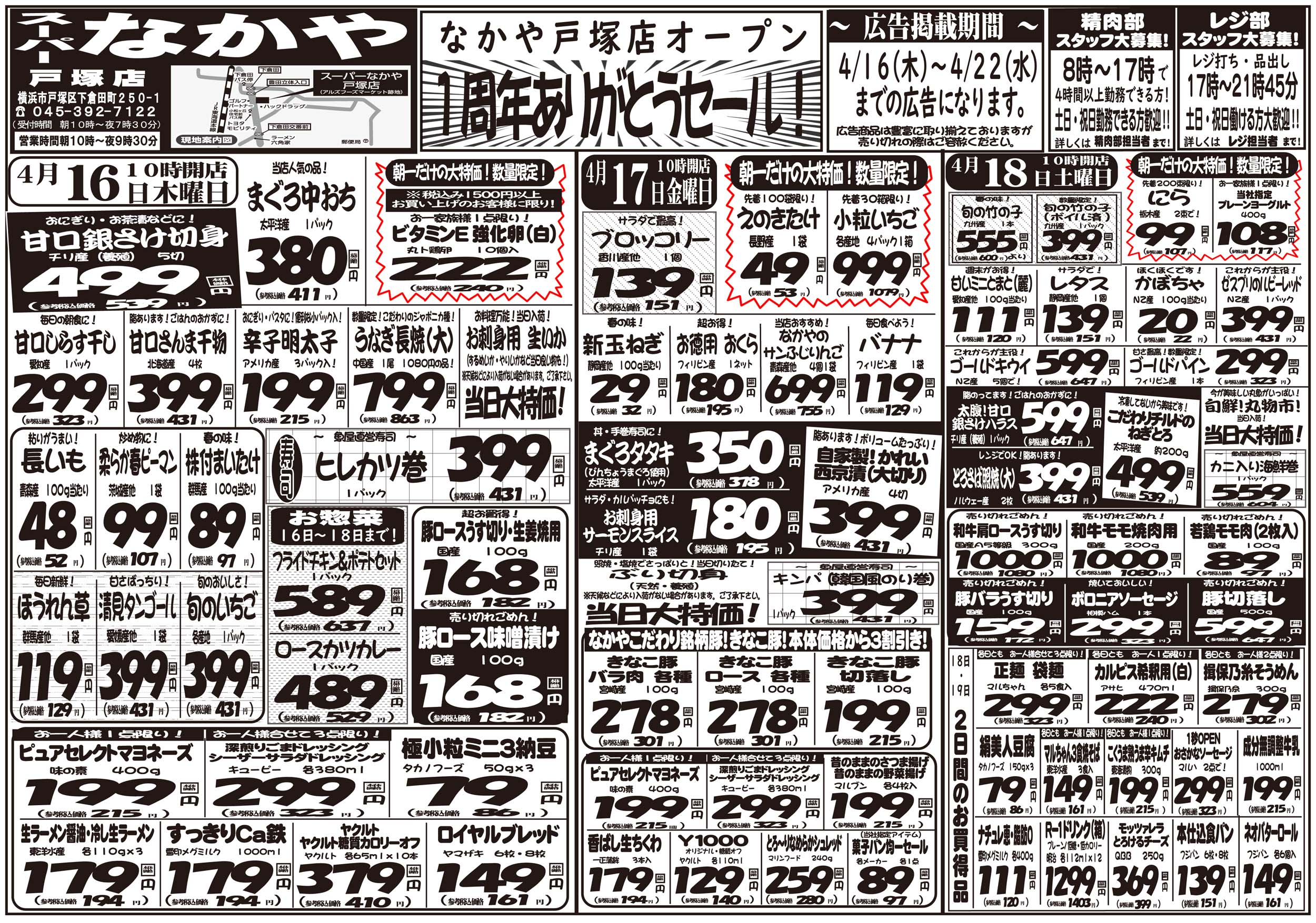 横浜市戸塚区 スーパー なかや 戸塚店 お客様の冷蔵庫がわりにご利用下さい。お買い得商品は折込チラシでチェック! チラシ クチコミを見る・投稿する チラシ 広告有効期限:2026.04.16~2026.04.22 その他のネットチラシ 周辺のチラシを見る このお店のTOPページへ 045-392-7122 twitter Facebook Google+