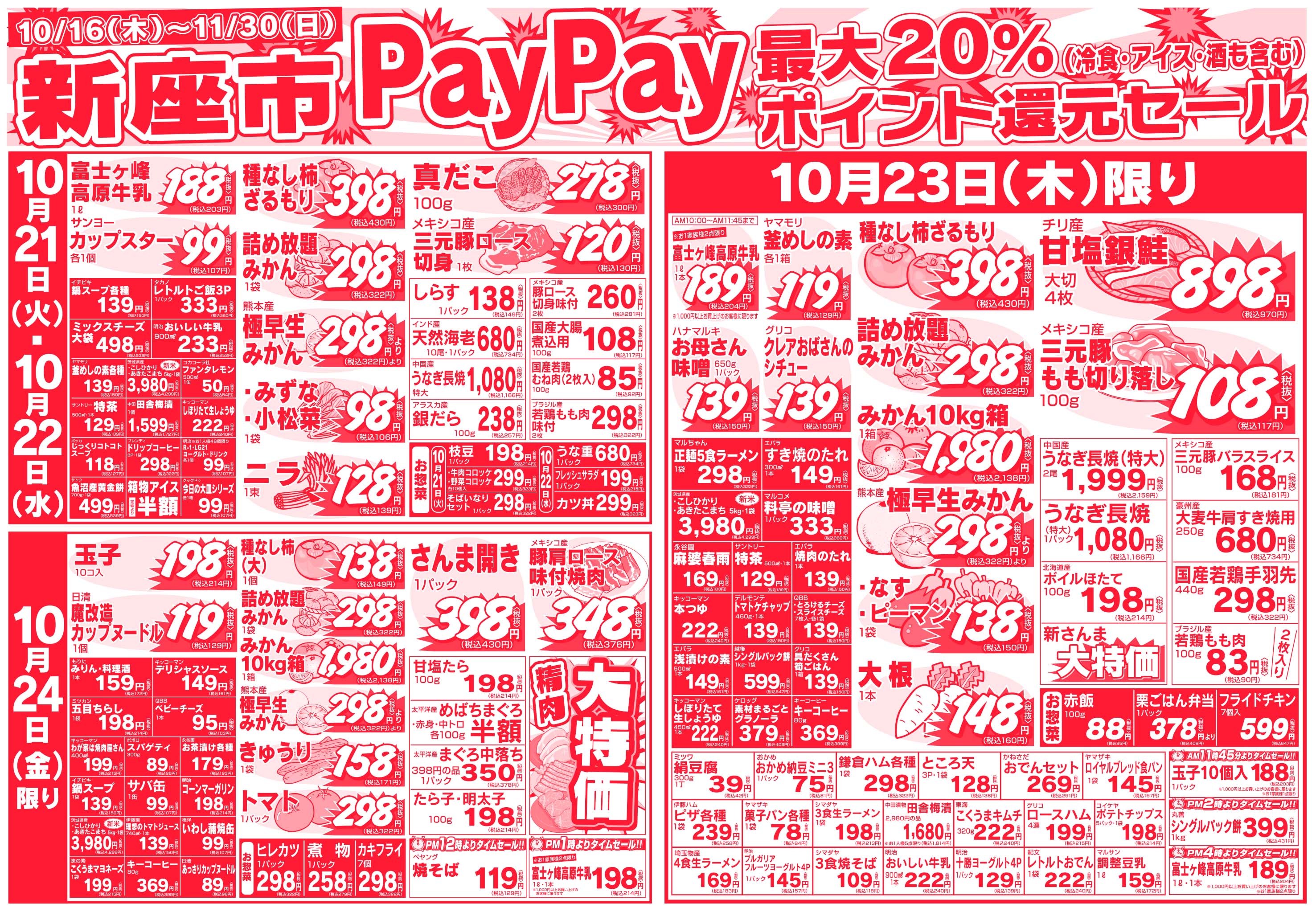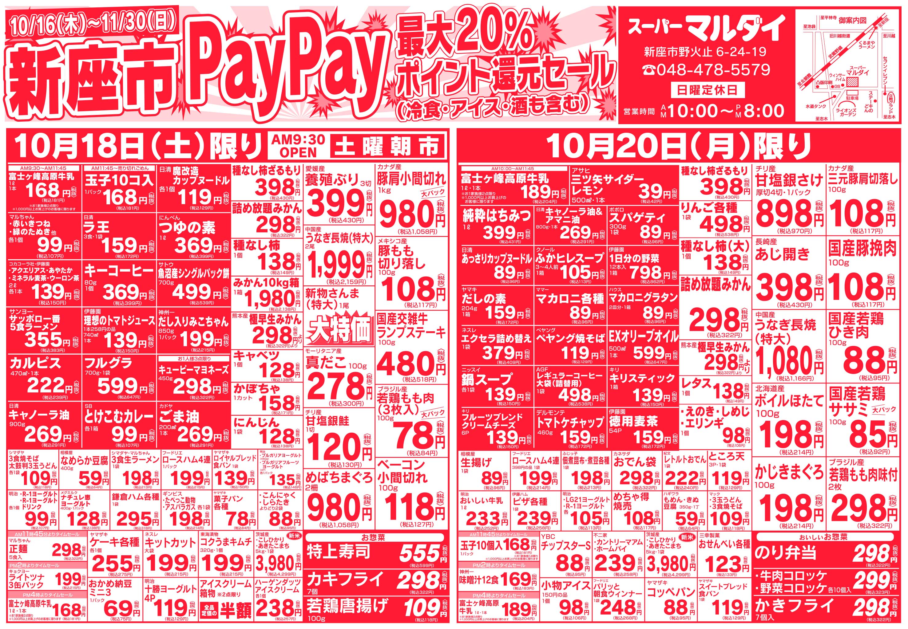 その他 埼玉県新座市 スーパー マルダイ 種類豊富な新鮮野菜からお肉・お魚を中心に生活に必要な食材がいっぱい! 毎日のお買い物がもっとお得になるイベントも毎日開催中! ピックアップニュース チラシ チラシ 広告有効期限:2025.10.18~2025.10.24 その他のネットチラシ 周辺のチラシを見る 周辺情報 グルメ ショッピング 車・バイク 住宅 暮らし 趣味・レジャー 美容・健康 周辺情報はありません このお店のTOPページへ 048-478-5579 twitter Facebook Google+
