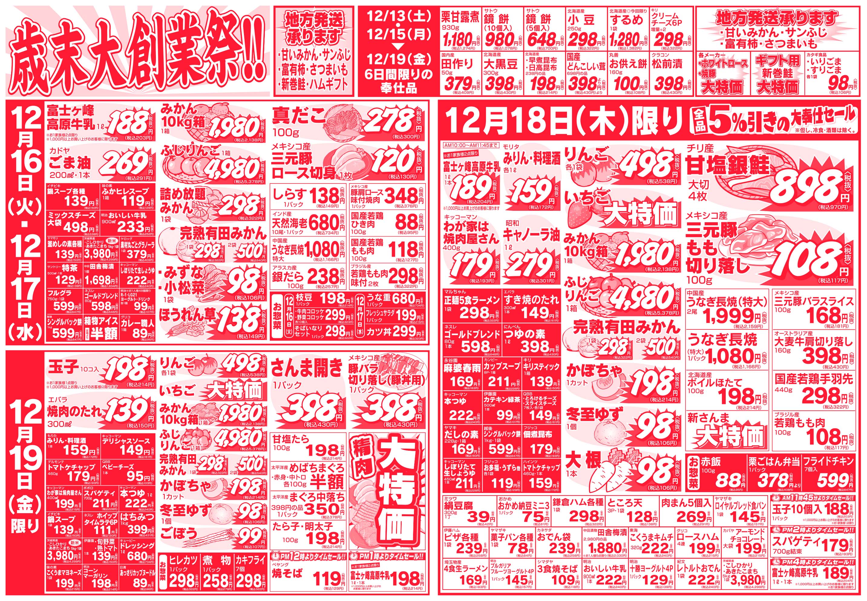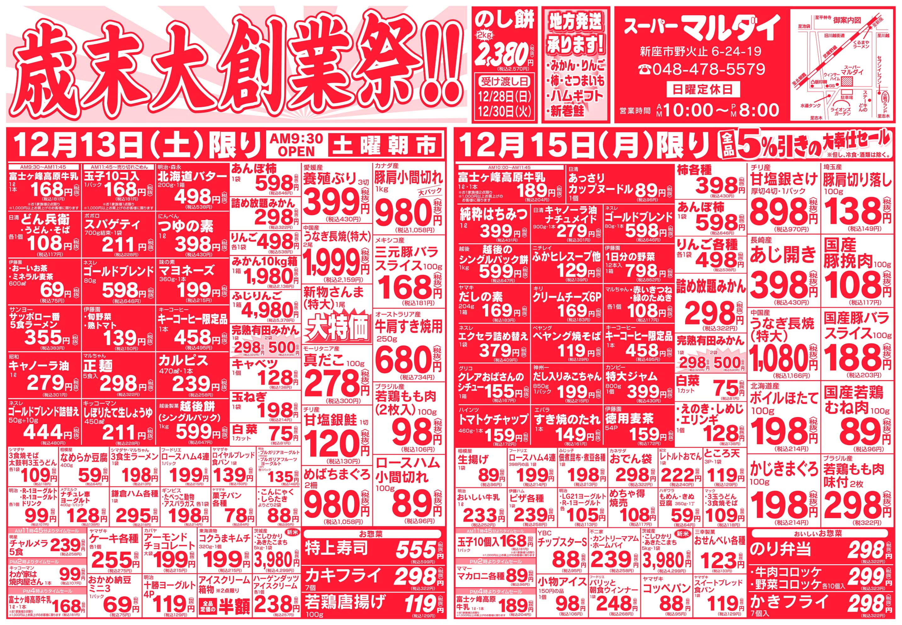 その他 埼玉県新座市 スーパー マルダイ 種類豊富な新鮮野菜からお肉・お魚を中心に生活に必要な食材がいっぱい! 毎日のお買い物がもっとお得になるイベントも毎日開催中! ピックアップニュース チラシ チラシ 広告有効期限:2025.12.13~2025.12.19 その他のネットチラシ 周辺のチラシを見る 周辺情報 グルメ ショッピング 車・バイク 住宅 暮らし 趣味・レジャー 美容・健康 周辺情報はありません このお店のTOPページへ 048-478-5579 twitter Facebook Google+