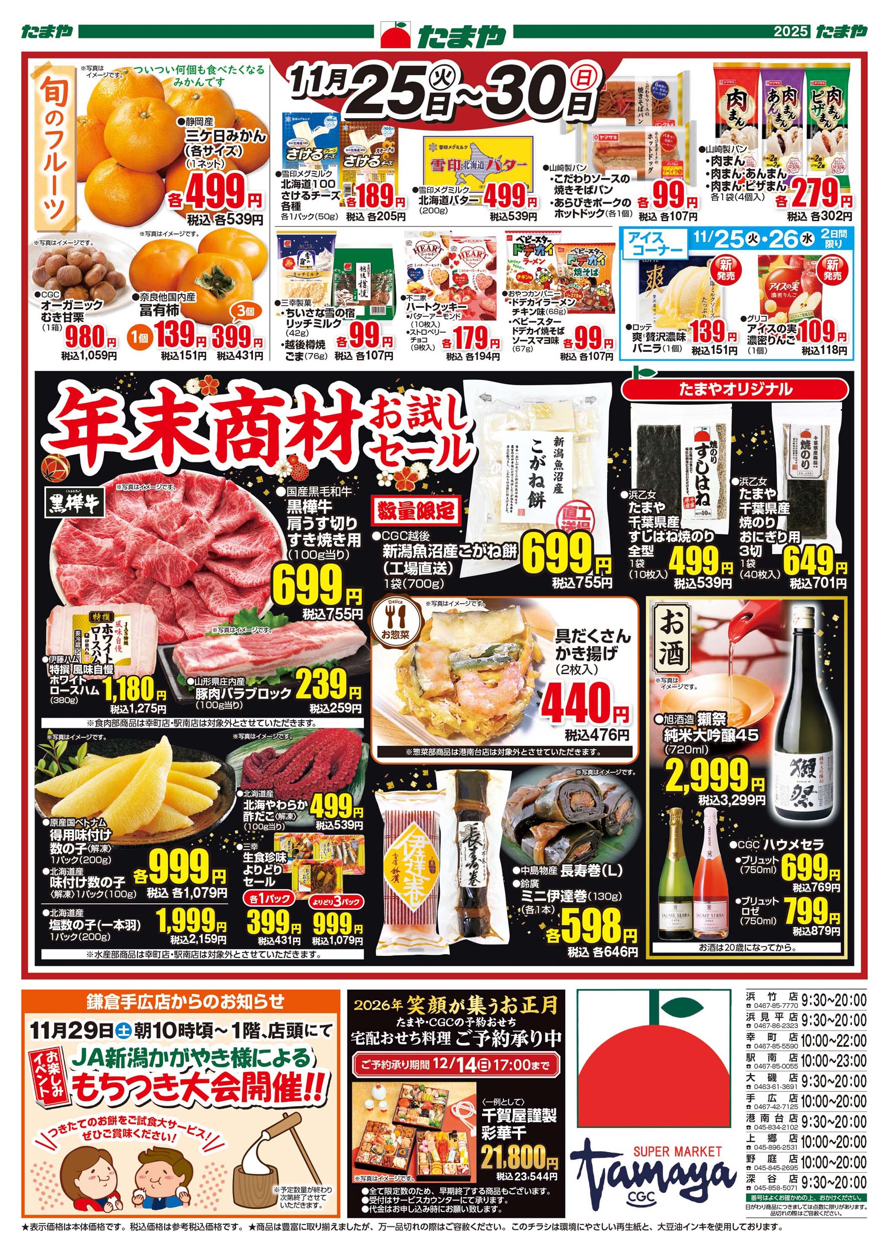 横浜市戸塚区 スーパーたまや 深谷店 生鮮食品、お惣菜、お酒、生活用品、豊富な品揃え。地域一番店となるべくサービス、価格に常に挑戦しております。 ネットチラシ クチコミを見る・投稿する ネットチラシ 広告有効期限:2025.11.25~2025.11.30 その他のネットチラシ 周辺のチラシを見る 周辺情報 グルメ ショッピング 車・バイク 住宅 暮らし 趣味・レジャー 美容・健康 周辺情報はありません このお店のTOPページへ 045-858-5071 twitter Facebook Google+