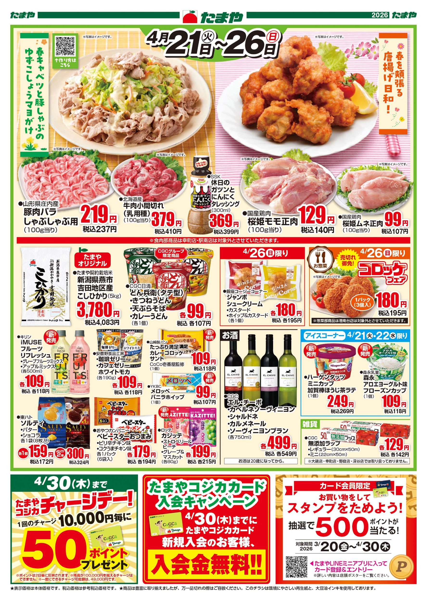 横浜市港南区 スーパーたまや 港南台店 生鮮食品、お惣菜、お酒、生活用品、豊富な品揃え。地域一番店となるべくサービス、価格に常に挑戦しております。 ネットチラシ クチコミを見る・投稿する ネットチラシ 広告有効期限:2026.04.21~2026.04.26 その他のネットチラシ 周辺のチラシを見る 周辺情報 グルメ ショッピング 車・バイク 住宅 暮らし 趣味・レジャー 美容・健康 周辺情報はありません このお店のTOPページへ 045-834-2102 twitter Facebook Google+